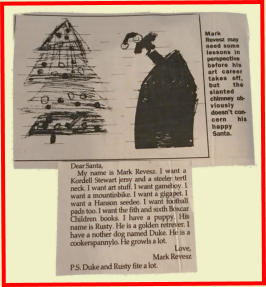 That video was Christmas 15 to 17 years ago.This newspaper clipping was in a local paper about 27 years ago! This boy was only about 7 years old but he knew that to get what he wanted for Christmas, he would have to write to Santa. So he did! (Click on the photo to enlarge it.)