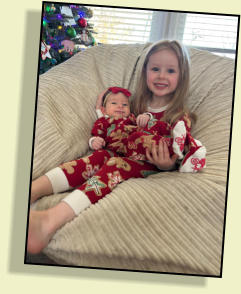 Savannah is hanging onto herdear little sister and looking forward tohelping her celebrate her first Christmas!